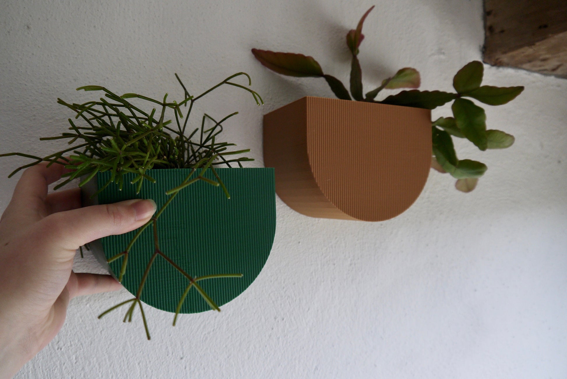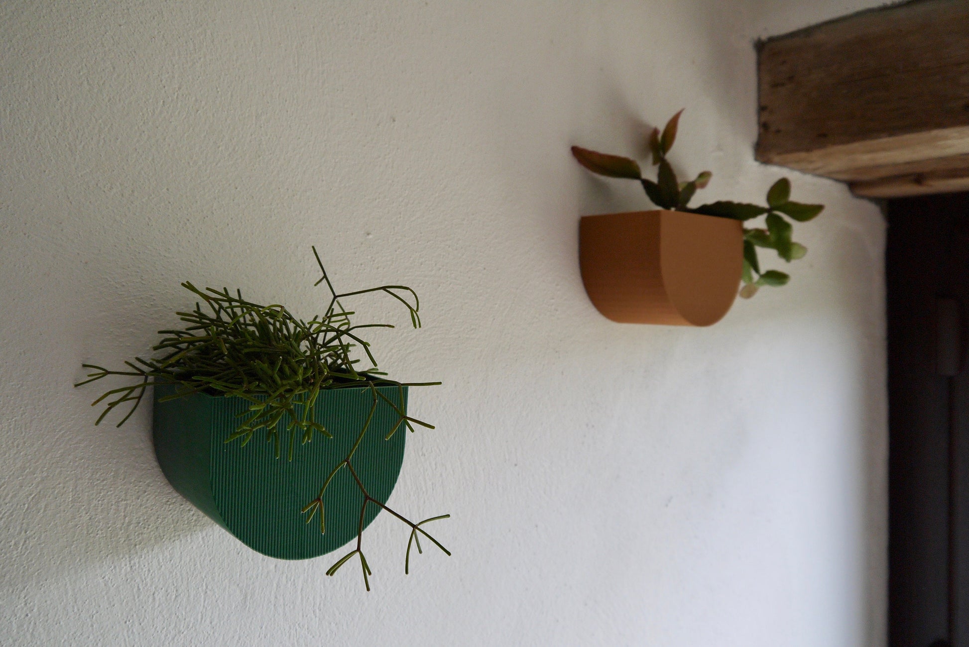 Wall mounted plant holder made from plant based plastic. The classy stripe texture and gentle curve will elevate any space whilst incorporating plants into your home. Will add a jungle vibe to a photo gallery on your wall or you could create an entire wall mounted vertical garden!